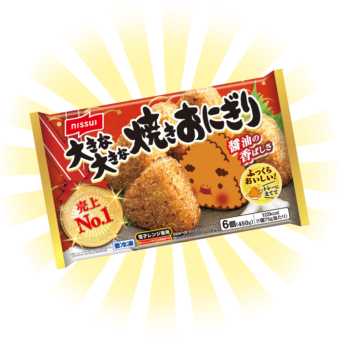 大きな大きな焼きおにぎりは、みんなのもとに年間約1億個以上の焼きおにぎりをお届けしているよ。
